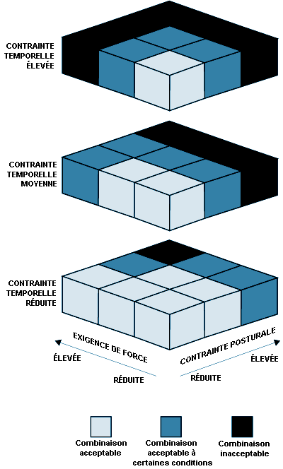 La performance de lopérateur humain est habituellement optimale dans la plage de tolérance dune variable donnée. Par le passé, lergonomie sest surtout attachée à réduire tant la force musculaire à déployer que lamplitude et la diversité des mouvements et à sassurer que les plages de tolérance ne soient pas dépassées. La mutation la plus importante survenue dans le travail, cest-à-dire lavènement de lordinateur, a créé le problème opposé. Sil nest pas conçu ergonomiquement, un poste de travail sur ordinateur peut imposer une posture trop statique, des gestes beaucoup trop limités et une répétition excessive de telle ou telle combinaison de mouvements des articulations.